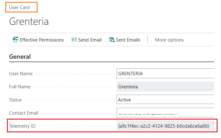 El código de ID de telemetría de usuario lo puedes encontrar en la ficha del usuario.