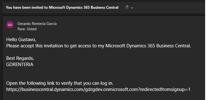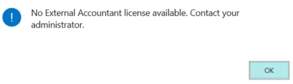 El contador externo debe acceder a Business Central aceptando el siguiente mensaje.