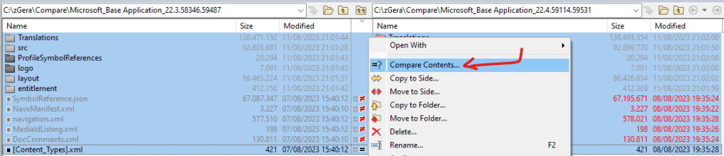 - We must have the same file type in the versions we want to compare. In the example we have version 22.3 and 22.4 of the Base application.