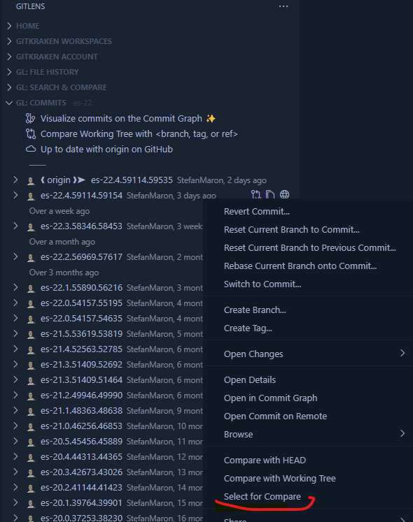 For example, to compare two minor versions, we would do the following: we select a version to compare.