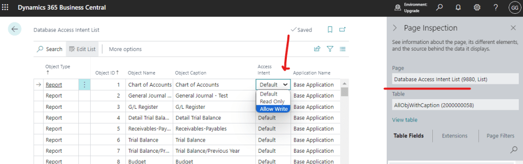 Para identificar el valor de la propiedad DataAccessIntent en un reporte tenemos la función Report.IsReadOnly() Method – Business Central | Microsoft Learn, por lo pronto no existe esta función para los objetos tipo página, en el portal de ideas de Microsoft se cuenta con esta entrada para poder contar con ello: Add IsReadOnly to the page object to get the current data access intent