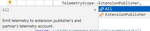 - ExtensionPublisher: Envía la señal de telemetría personalizada al servicio de Application Insights del partner configurado en el archivo App.JSON de la extensión. Será la que principalmente utilizaremos en nuestras extensiones.