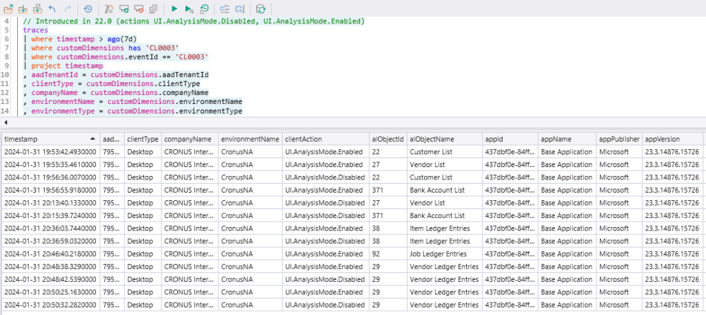 - Analyzing client action telemetry – Business Central | Microsoft Learn