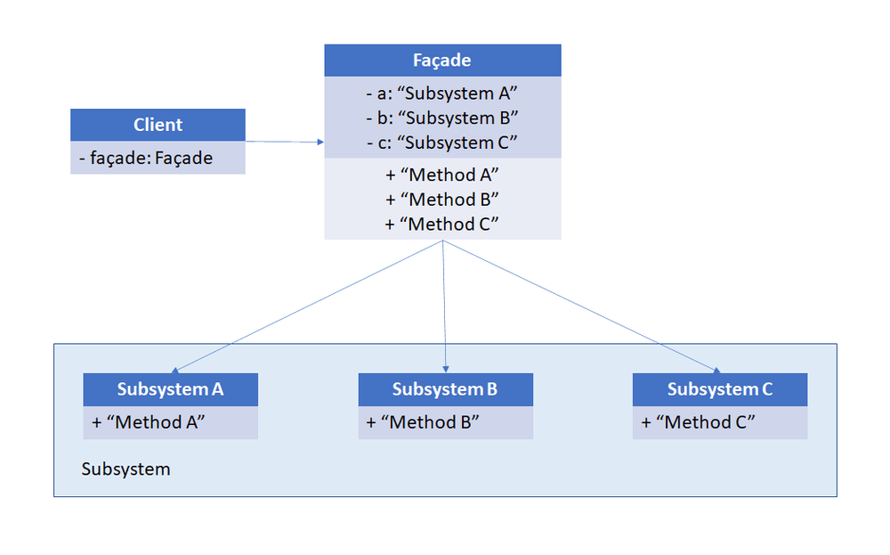 El patrón de diseño de fachada funciona como una interfaz frontal que simplifica la interacción con componentes más complejos detrás de una API. Puedes aprender sobre este patrón: