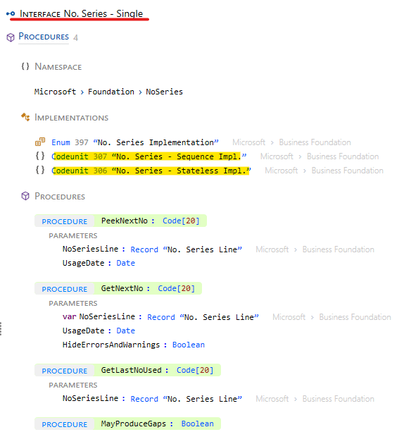 Two codeunits have implemented the interface, one called «Sequence» and the other «Normal»
