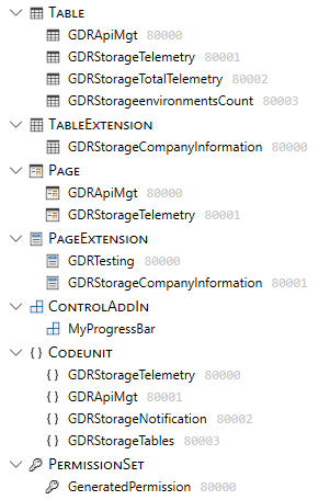 - Codeunits: Connection to APIs, notification, registration of tables and sending of telemetry signals.
