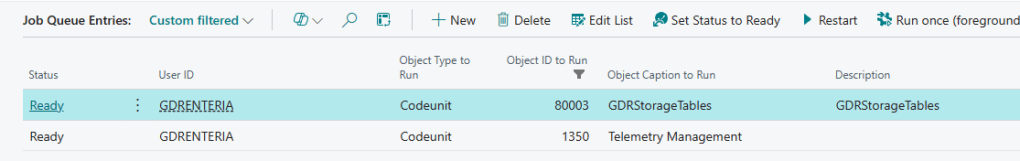 We configure the codeunit in the job queue that will be responsible for working with the APIs daily and registering the values in the internal tables. Likewise, we must check if we have the 1350 codeunit responsible for sending telemetry signals to our Application Insights service enabled and working on a daily basis. Likewise, the API configuration page has to have our connection data.