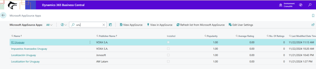 Another line of search would be the Appsource portal, where we would look for localization solutions for Business Central: Business Apps – Microsoft AppSource