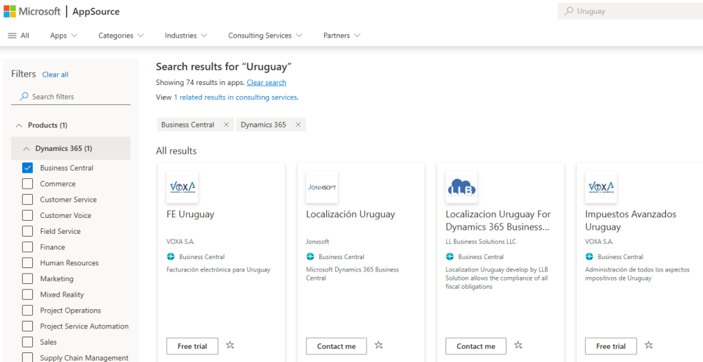 Una vez identificados los partners existentes, lo siguiente sería acceder a su información y contactarlos, consultar sobre sus soluciones y si tienen un localizado para Business Central, analizar su alcance y plan de soporte y otros.